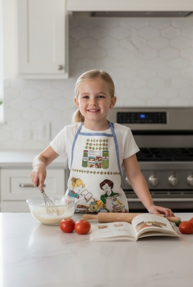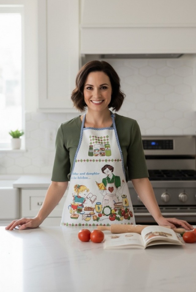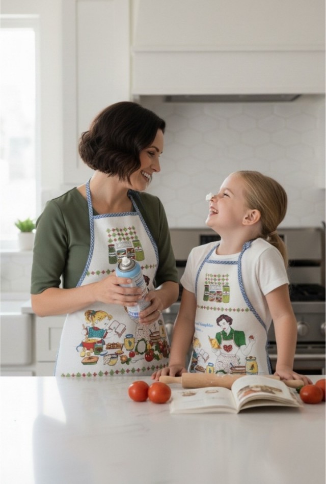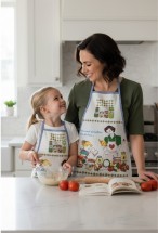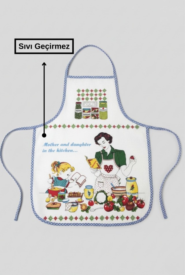 Evde yemek yaparken, hamur açarken veya çocuklarla mutfakta keyifli vakit geçirirken anne kız sıvı geçirmez mutfak önlüğü ile hem temiz hem şık kalın.;