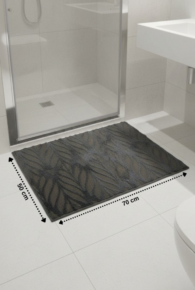 Mislina Home Kaydırmaz Tabanlı Desenli Paspas Ayak Havlusu Su Emici Kaymaz Duş Paspası Antrasit 50x70 cm