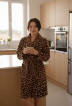 Mislina Home Lumor Şal Yaka Wellsoft Peluş Yumuşak Sabahlık | Leopar