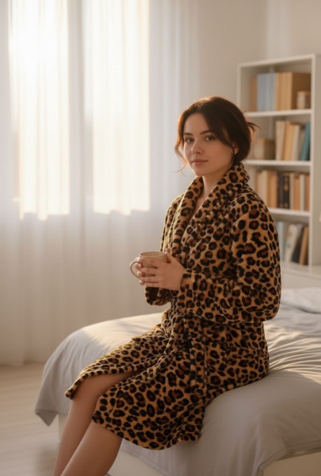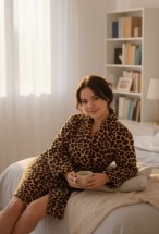 Yumuşacık wellsoft kumaştan üretilmiş leopar desenli kadın