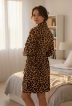 Lumor Şal Yaka Wellsoft Peluş Yumuşak Sabahlık | Leopar