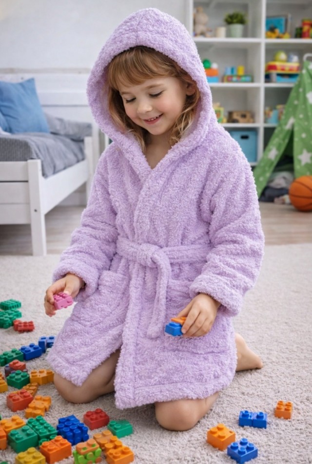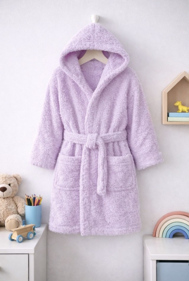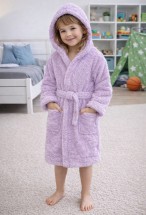 Mislina Home Luna Soft Kız / Erkek Çocuk Kapşonlu Wellsoft Bornoz Peluş Sabahlık | Lila