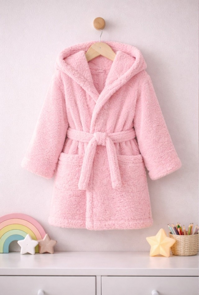 Mislina Home Luna Soft Kız / Erkek Çocuk Kapşonlu Wellsoft Bornoz Peluş Sabahlık | Pudra