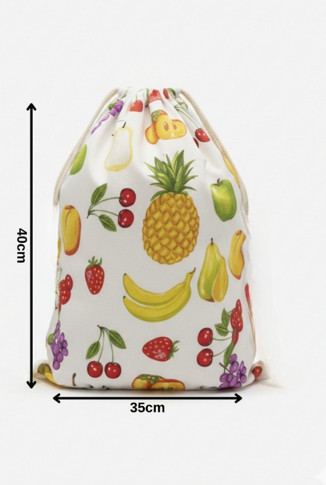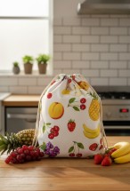 Mislina Home Organik Pamuk Meyve Desenli Çok Amaçlı Bez Çanta | Ekmek - Market - Oyuncak -Poşetlik Torbası 35x40