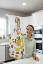 Bu meyve desenli bez çanta, sadece bir taşıma aracı değil, aynı zamanda çevre bilincinizi ve kişisel tarzınızı yansıtan bir aksesuardır. Organik pamuk bez çanta arayanlar, çok amaçlı torba isteyenler ve çevre dostu alışveriş çantası tercih edenler için idealdir. Evinizin her köşesinde, markette veya dışarıda stil sahibi ve pratik çözümler sunar.;