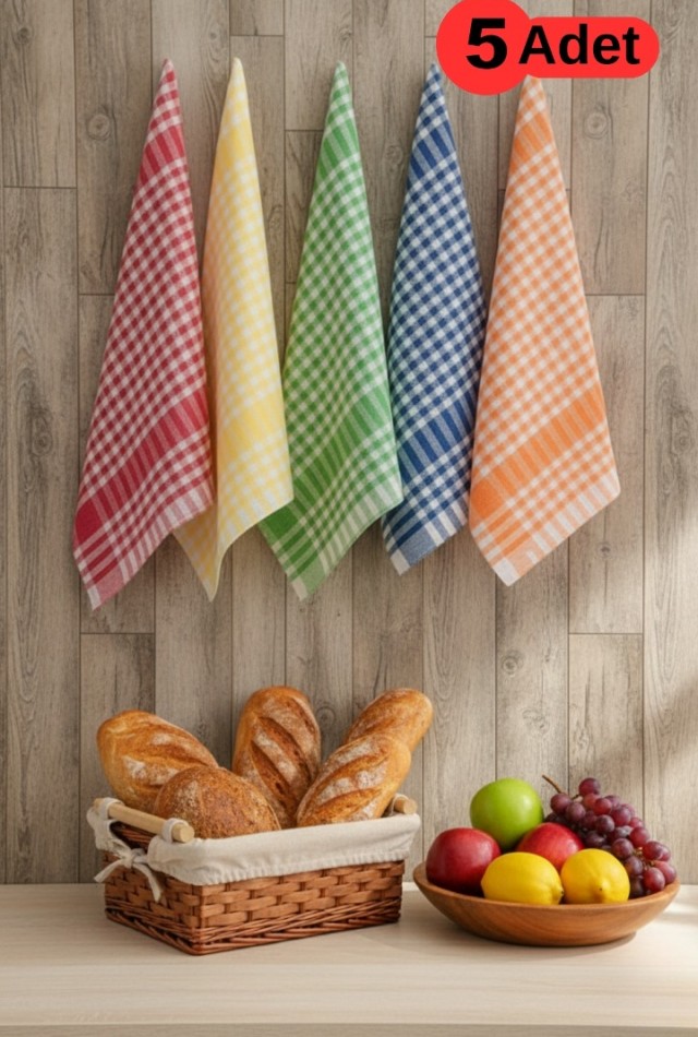 Mislina Home Pötikareli 5'li Alman Servis Peçetesi Mutfak Havlusu Beslenme Örtüsü Kurulama Bezi Renkli 47x67cm