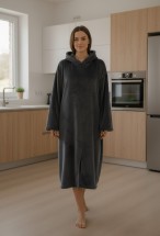 Serona Wellsoft Peluş Kapüşonlu Uzun Panço Yumuşak Dokulu Giyilebilir Tv Battaniyesi | Antrasit S/M