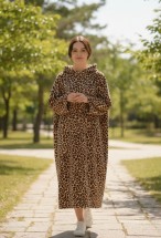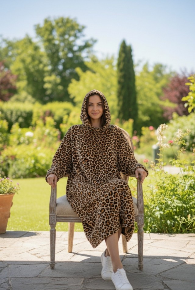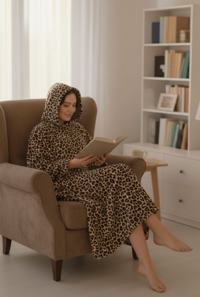 Serona Wellsoft Peluş Kapüşonlu Uzun Panço Yumuşak Dokulu Giyilebilir Tv Battaniyesi | Leopar S/M