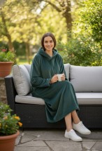 Serona Wellsoft Peluş Kapüşonlu Uzun Panço Yumuşak Dokulu Giyilebilir Tv Battaniyesi | Zümrüt Yeşili