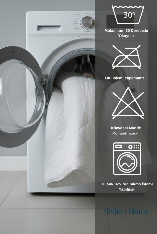 Yıkama Talimatı: Maksimum 30 derecede yıkanabilir, düşük devirde sıkma yapılmalı, kurutma makinesine atılmamalıdır."